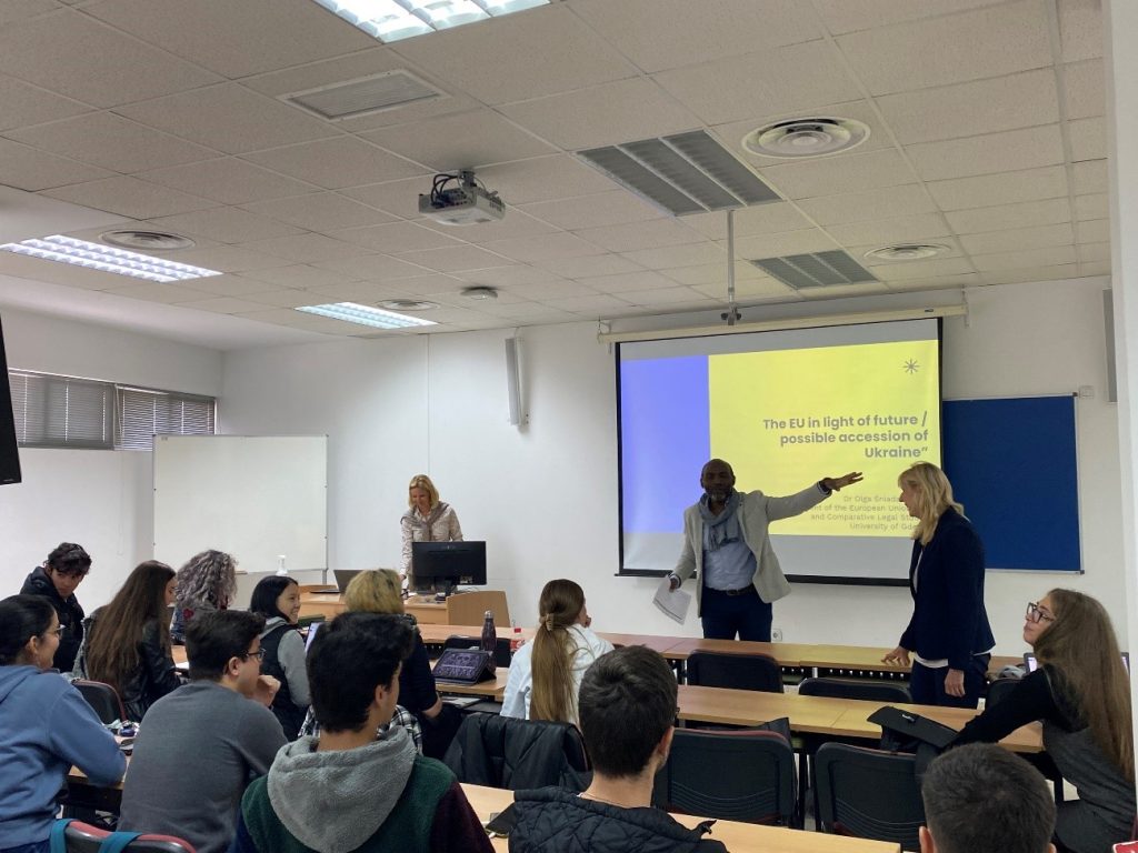 La ponencia de la Dra. Olga Śniadach, cuyo título fue “The EU in light of future/possible accession of Ukraine”, abarcó, a modo introductorio, cuáles son los elementos que definen a la Unión Europea, como organización internacional política de derecho de integración y gobernanza común para, posteriormente, centrarse en el procedimiento de adhesión a la Unión Europea, concretamente, en el caso de Ucrania.